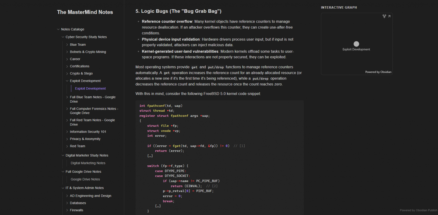The 3-Tier Note System:Fleeting Notes: Scratchpad notes taken during a CTF or debugging session. (e.g., "Port 8080 is open, might be Jenkins").Literature Notes: Summaries of articles, videos, or tools you are learning (e.g., "How Juicy Potato works").Permanent Notes: The final, polished "Field Note." This is a reusable, copy-pasteable guide (e.g., "Standard Juicy Potato Execution Syntax").